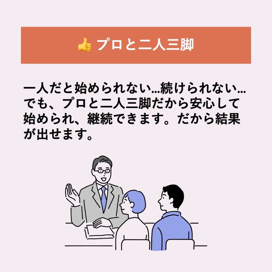 ・当コンサルティングは、お客様に実際に取り組んでいただく必要があり、前向きに実践いただけない場合は返金してお断りする場合がございます。
