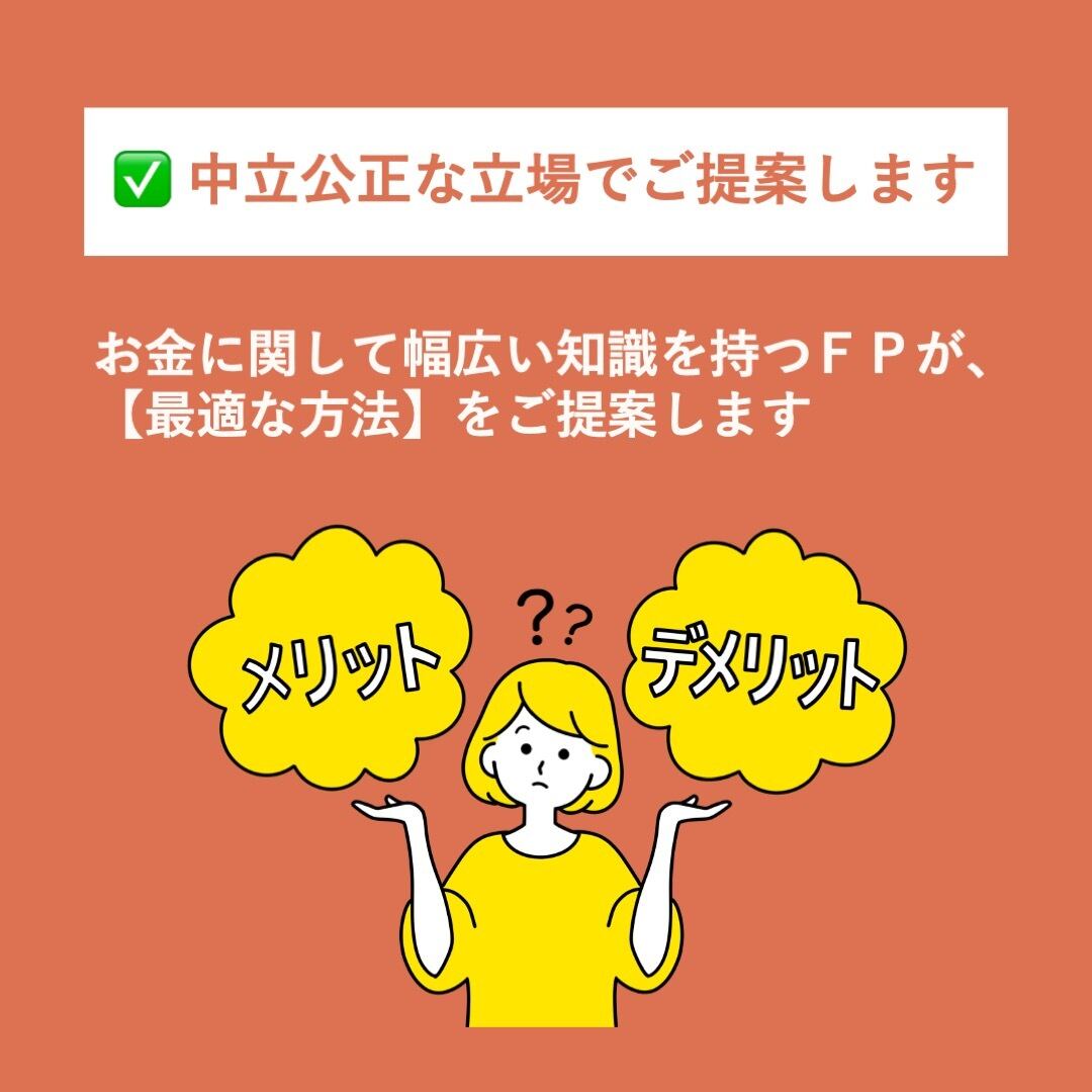 同様のサービスを無料で提供している業者もありますが、それは特定の商品を売ることで、その会社からのマージンでビジネスを成立させているからです。故に、お客様にとって最適の選択ではなくても、その会社の利益を優先するご提案を多くしがちです。