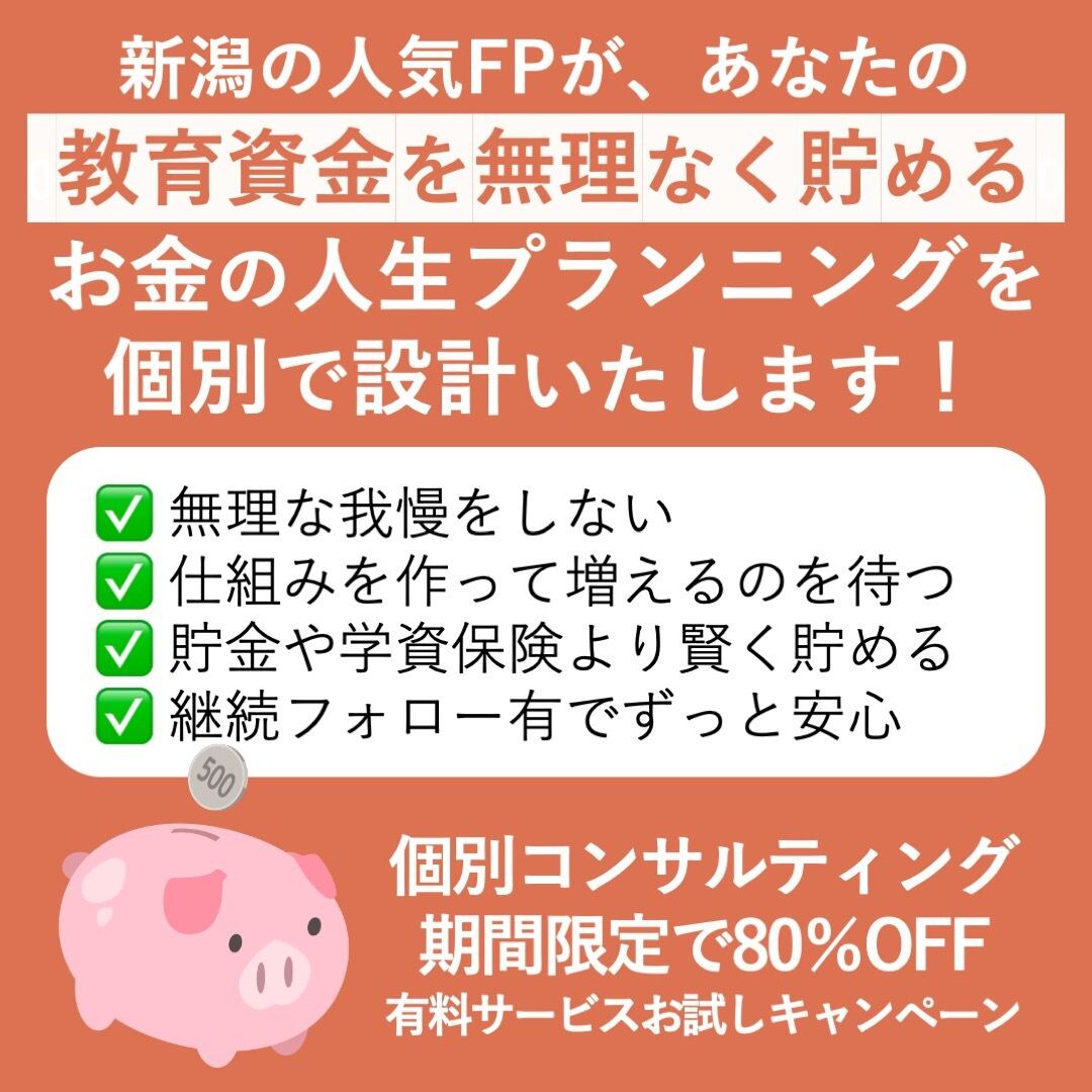 女性向けマネーセミナー講師を年間200回務め、雑誌「Hanako」のお金特集にも掲載された新潟の人気FPが、あなたのために個別でコンサルいたします。